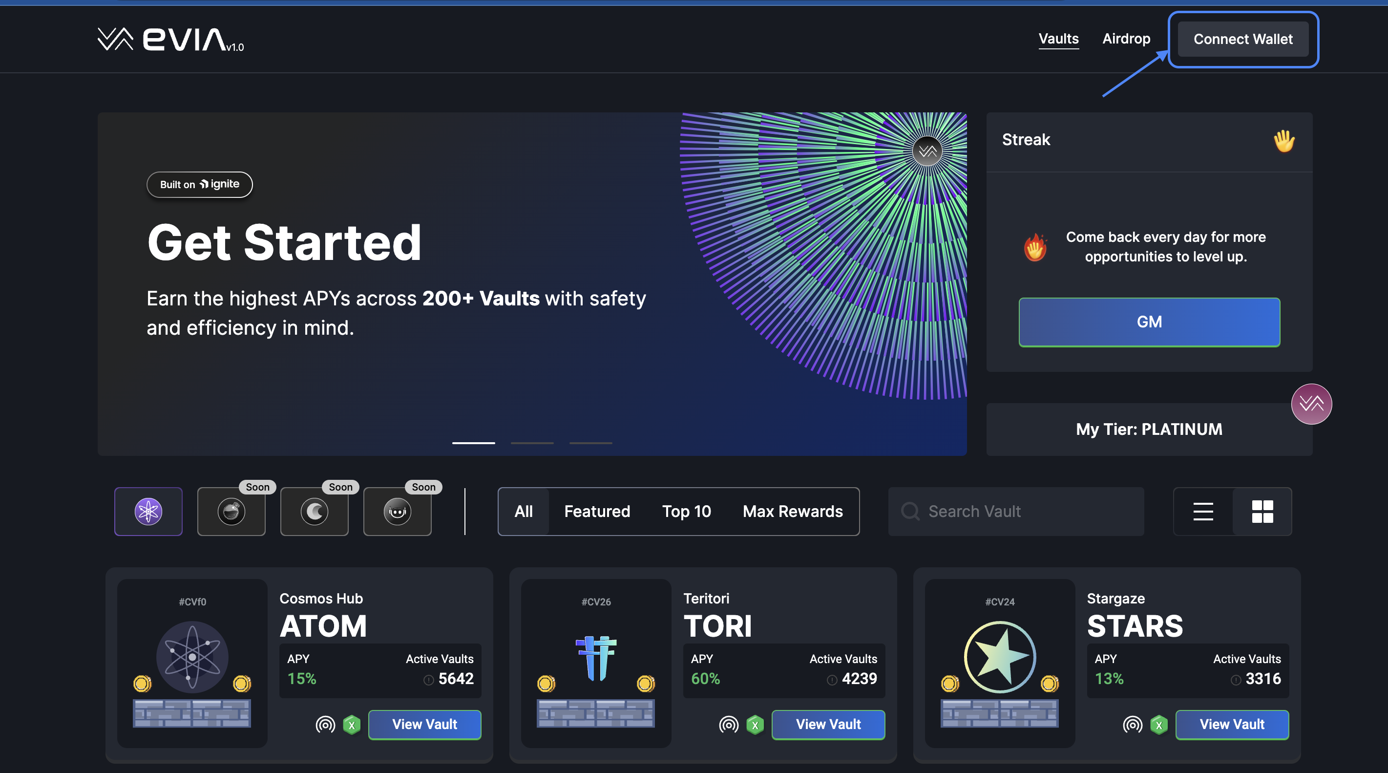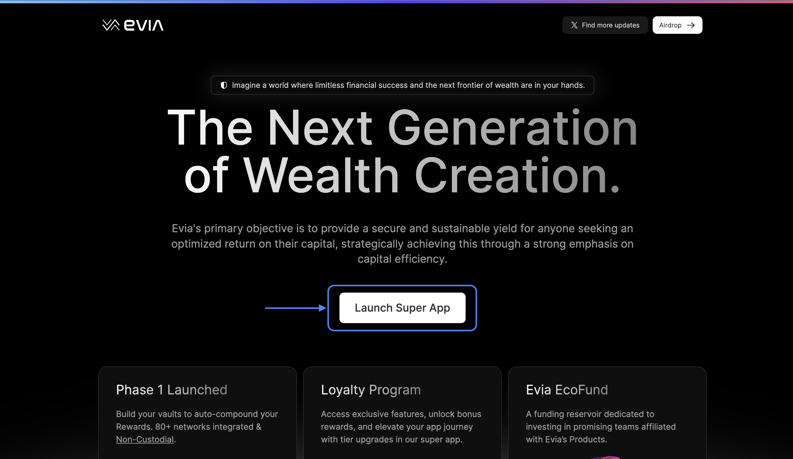 * Go to <https://evia.network> & Click on 'Launch Super App'